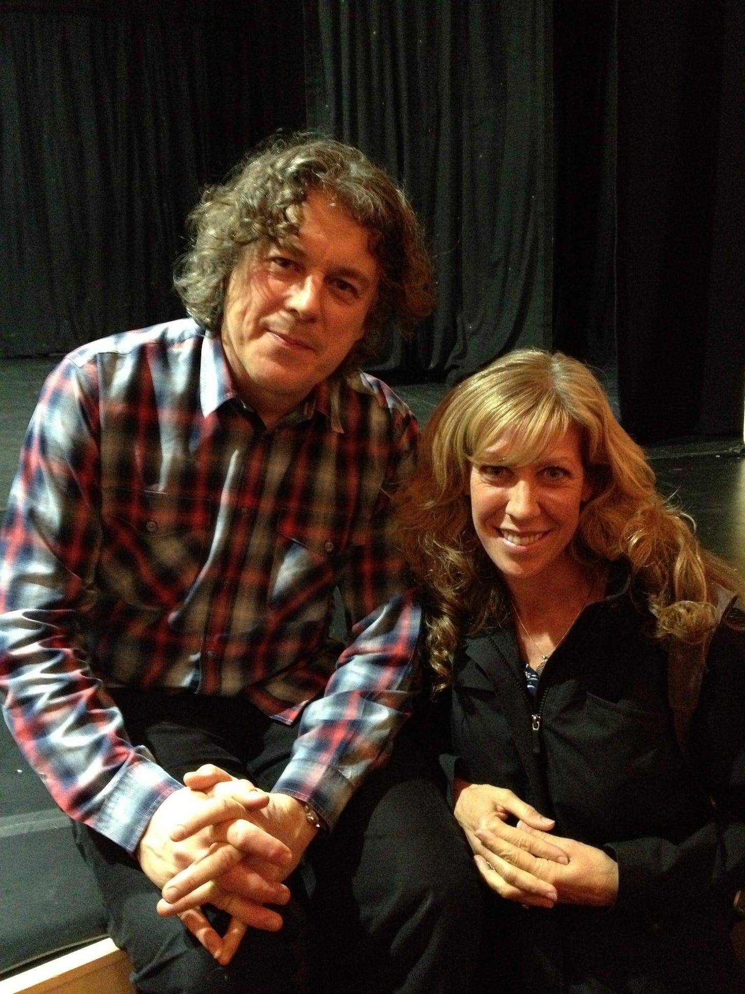 The panel consists of four participants: three rotating guests and one regular, Alan Davies — whom I adore. (In fact, I planned the dates of our trip to Scotland in 2012 around a stand-up show that Alan Davies was doing in Glasgow. We went, I met him after the show, and was very happy to get our photo taken together.)