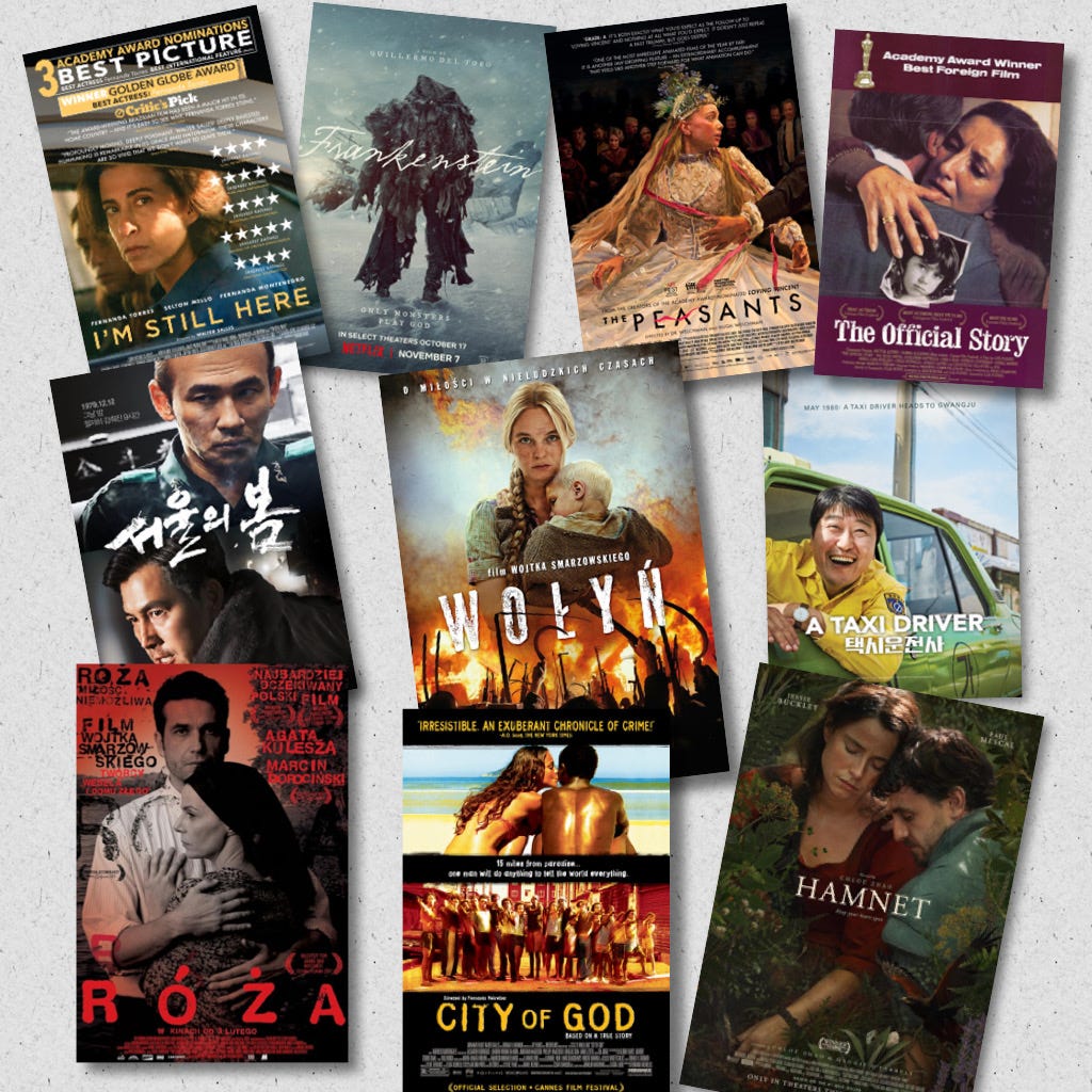 One thing that stood out as I looked back over this list was how many of our favorites center strong, complicated female characters. From Hatred, The Official Story, I’m Still Here, The Peasants, and Rose to Hamnet, Master of the House, The Quick and the Dead, and even The Tale of the Princess Kaguya, these films are anchored by women navigating violence, jealousy, grief, and circumstances far outside their control and with little or no protection. Many are victims—of war, of patriarchy, of cruelty or chance—but they endure, adapt, and keep going. Really unforgettable characters in all of these films.