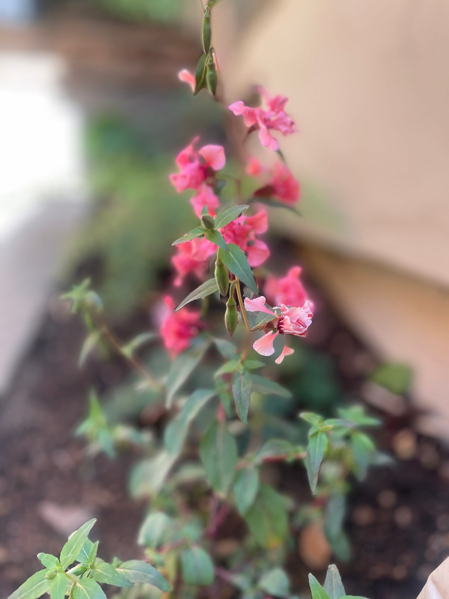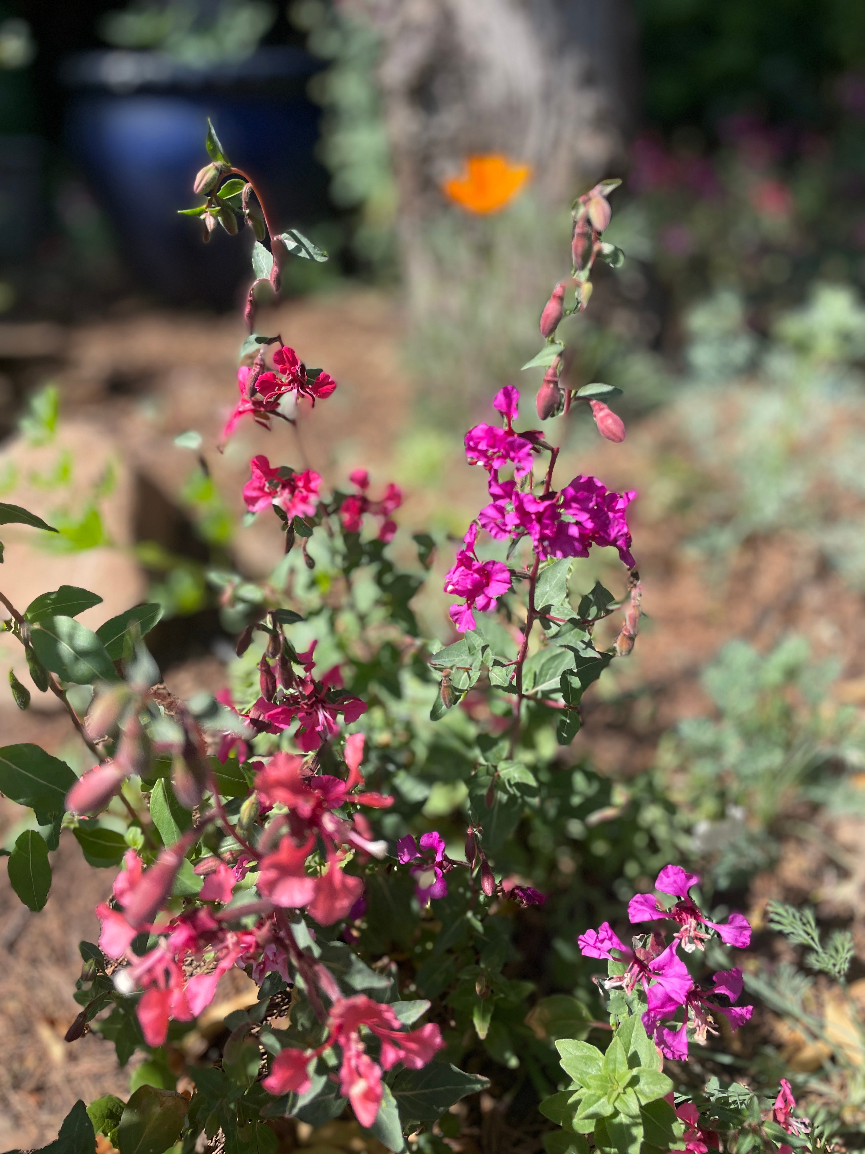 The wildflowers that have worked well in our part-sun, part-shade kitchen planters are elegant clarkia, tidy tips, and penstemon. (While not wildflowers, I’ve also included the herb yerba buena and sword ferns — not pictured.) Yes, I’m limiting their growth and spread, but if planters and pots are all you have to work with, it’s better than nothing. The pollinators you’ll be supporting will be grateful for whatever you can provide.