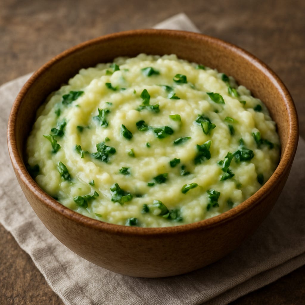 While those are the classics, variations commonly add scallions (spring onions), leeks, onions, chives, or even laverbread; some versions swap cabbage for kale. Historically inexpensive and eaten year-round, colcannon also became the customary Halloween evening meal before a night of amusements and pranks.