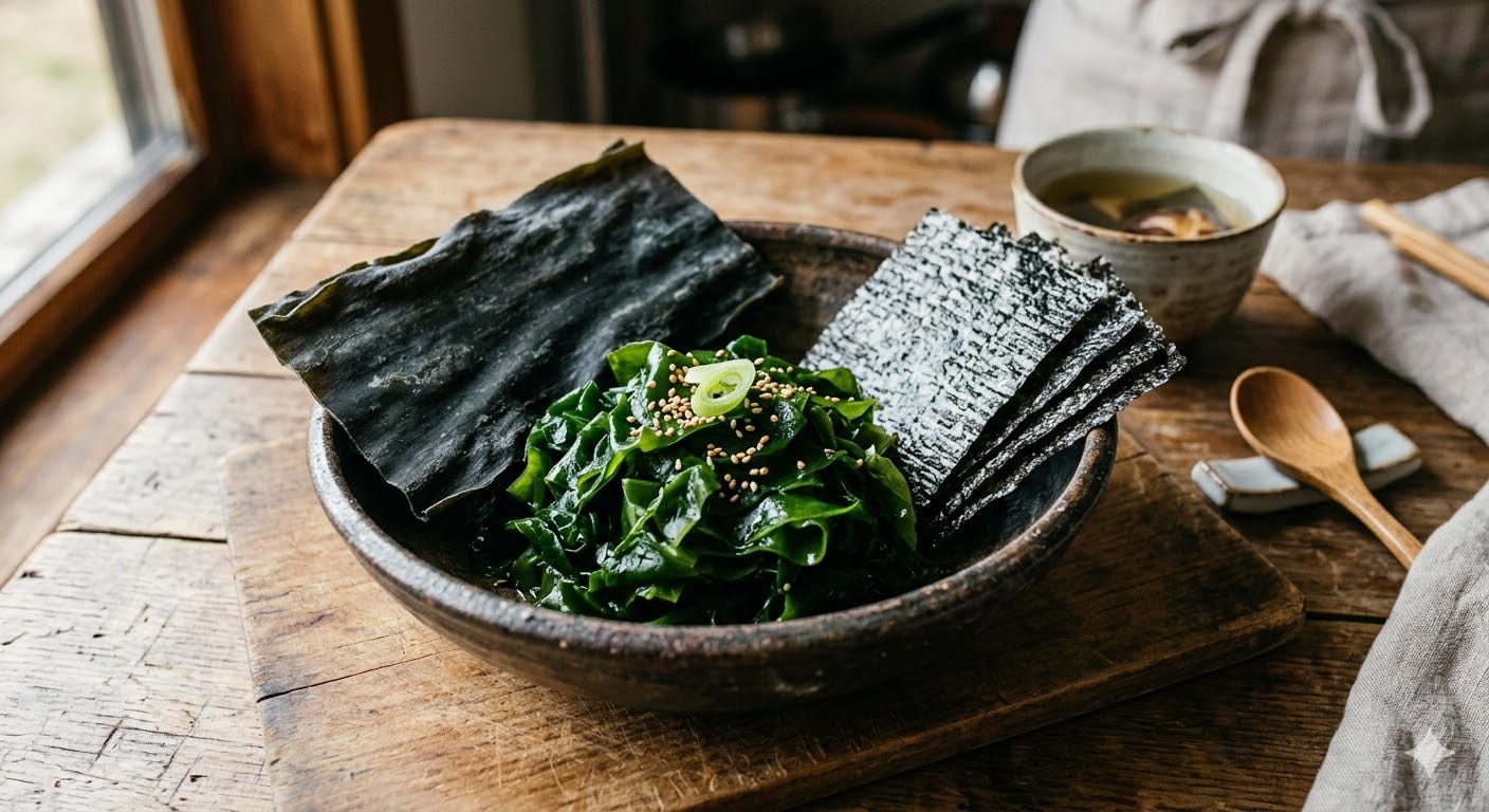 Wakame: Mild, slightly sweet, and slippery. It rehydrates fast, so it’s perfect for miso soup or a refreshing salad with vinegar and sesame.