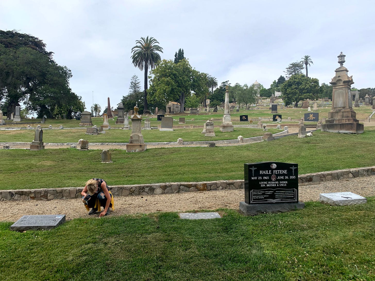 We already loved Mountain View Cemetery. It is a stunning, historic space designed by Frederick Law Olmsted, the visionary landscape architect who also designed Central Park in New York City. We walk there frequently with friends and with each other, wandering past the graves of California founders.